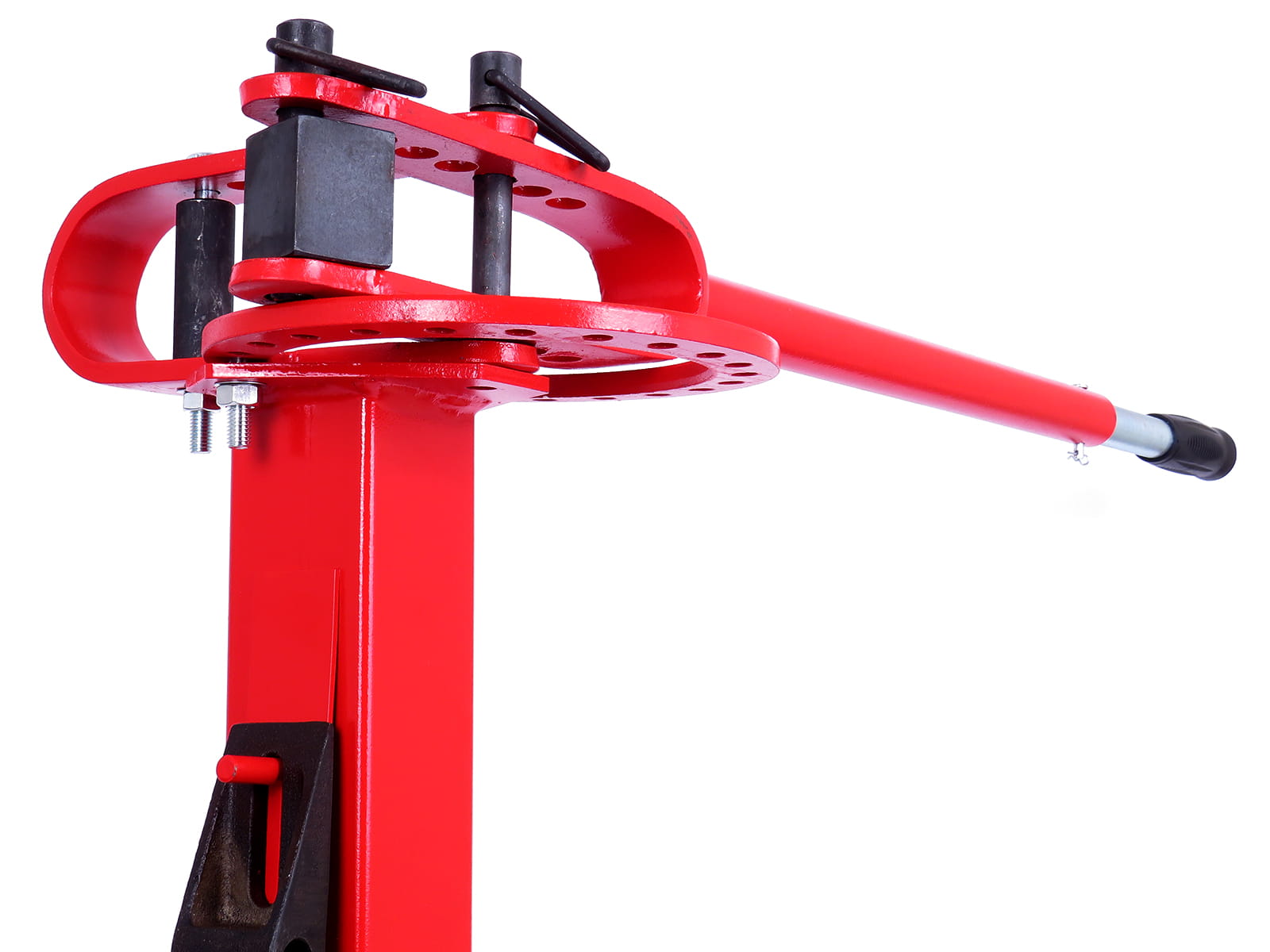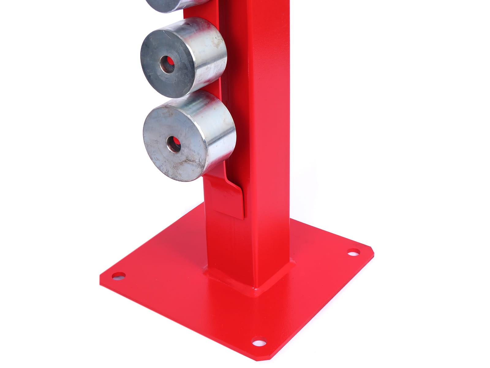 Płyta montażowa z grubej stali z 4 otworami umożliwia solidne i stabilne przymocowanie giętarki do podłoża, co przekłada się na komfortową i wydajną pracę.