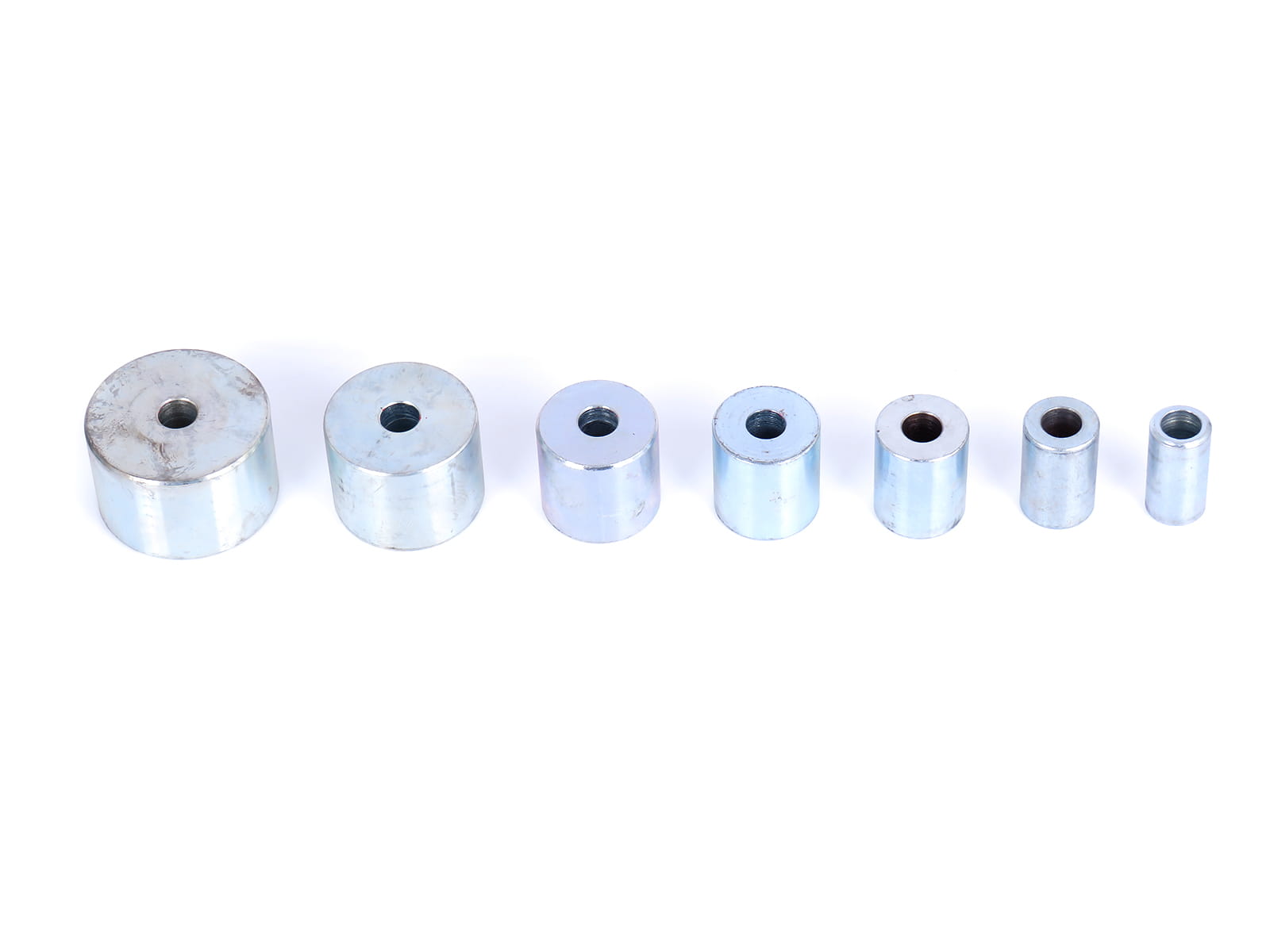Zestaw zawiera bogaty zestaw matryc: Ø 12, 24, 30, 37, 43, 49, 62, 75 mm, umożliwiających wykonywanie wielu skomplikowanych kształtów, a zastosowane ograniczniki pozwalają na wielokrotne wykonanie wcześniejszego kształtu.
