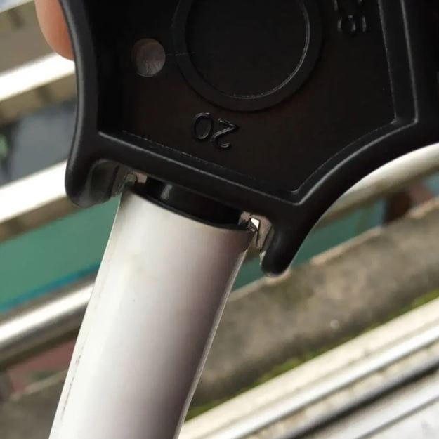 Końcówka rury po obcięciu nożycami jest odkształcona i uniemożliwia poprawne nasadzenie kształtki PEX. Kalibrator posiada funkcje fazowania, nożyki które dodatkowo fazują rurę.