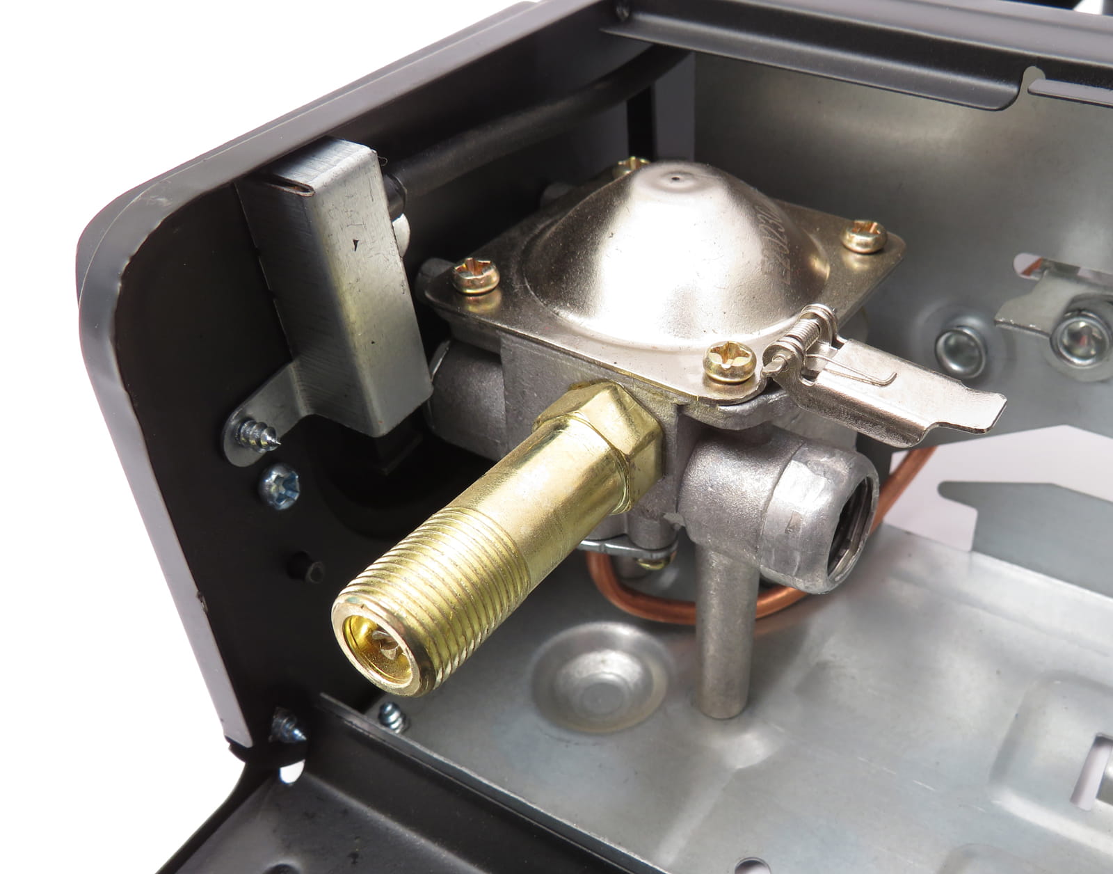 Zapłon piezoelektryczny wbudowany w obudowę, dzięki czemu przy zapalaniu nie ma potrzeby korzystania z zapałek.