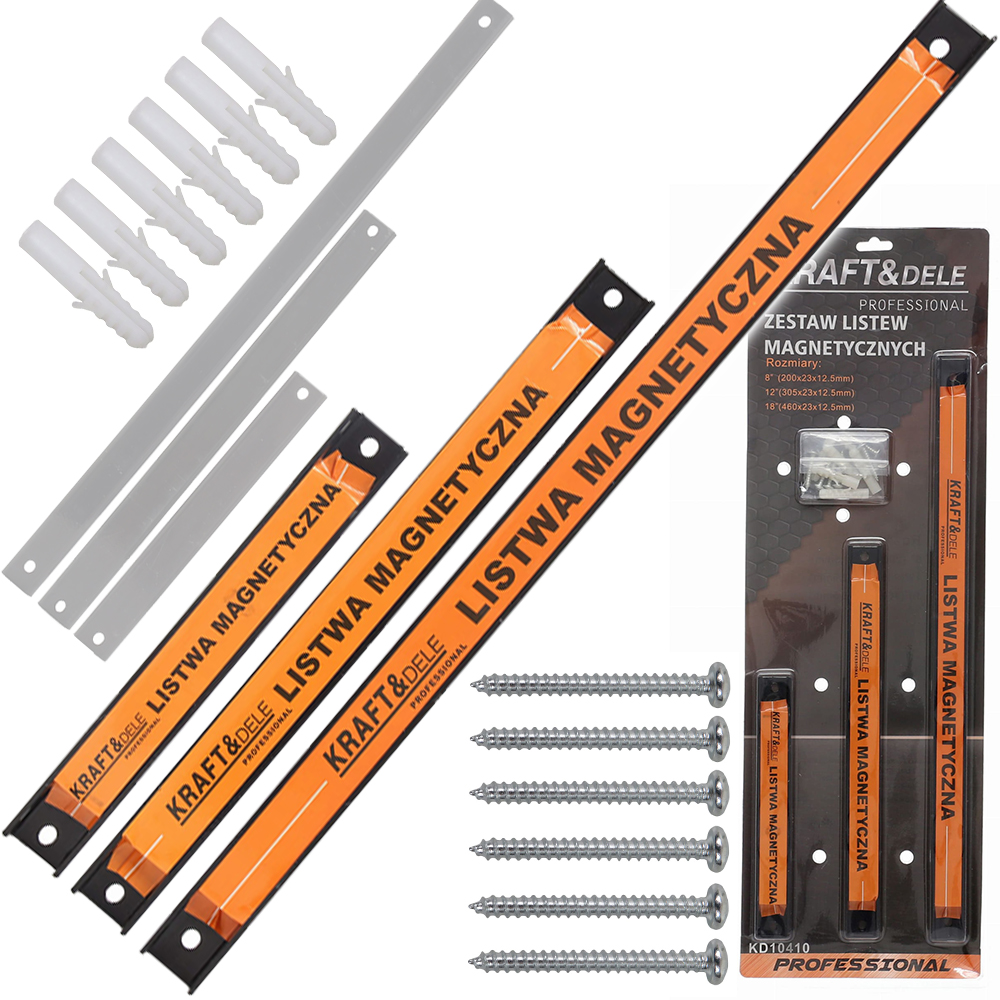 Zestaw listew magnetycznych w trzech rozmiarach to praktyczne rozwiązanie umożliwiające wygodne przechowywanie narzędzi w warsztacie, garażu lub w miejscu pracy. Dzięki zastosowaniu silnych magnesów narzędzia, takie jak klucze, wkrętaki czy szczypce, pozostają uporządkowane i zawsze łatwo dostępne.