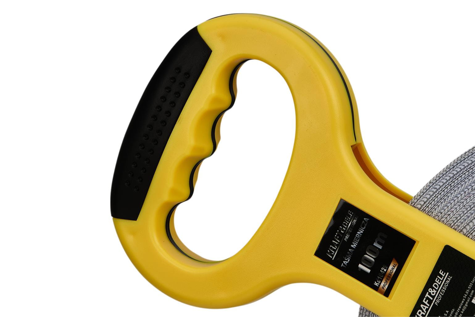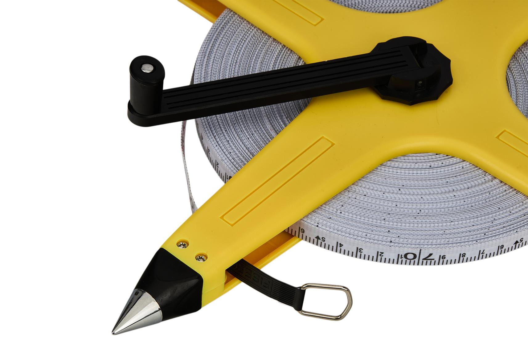 Zastosowanie końcówki umożliwiającej wbicie w grunt pozwala na stabilne rozpoczęcie pomiaru bez potrzeby dodatkowej pomocy. Dodatkowa linka przymocowana do taśmy ułatwia operowanie narzędziem, szczególnie podczas pracy jednoosobowej. Mechanizm zwijania zapewnia płynność i wygodę użytkowania.