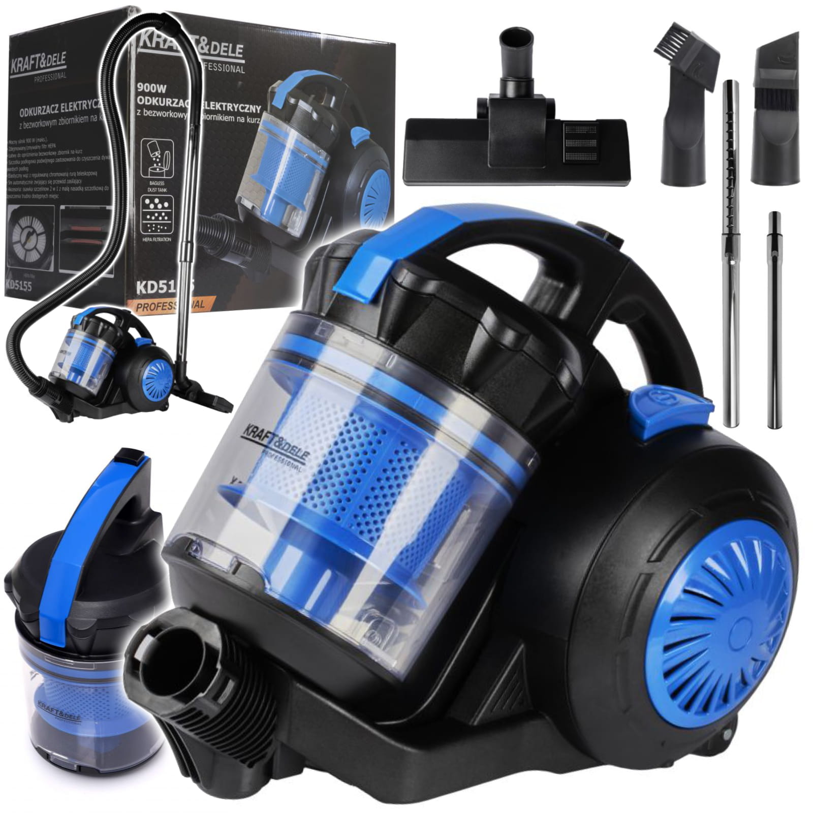MOCNY LEKKI BEZWORKOWY ODKURZACZ CYKLONOWY DOMOWY 5M FILTR MOC 900W 230V