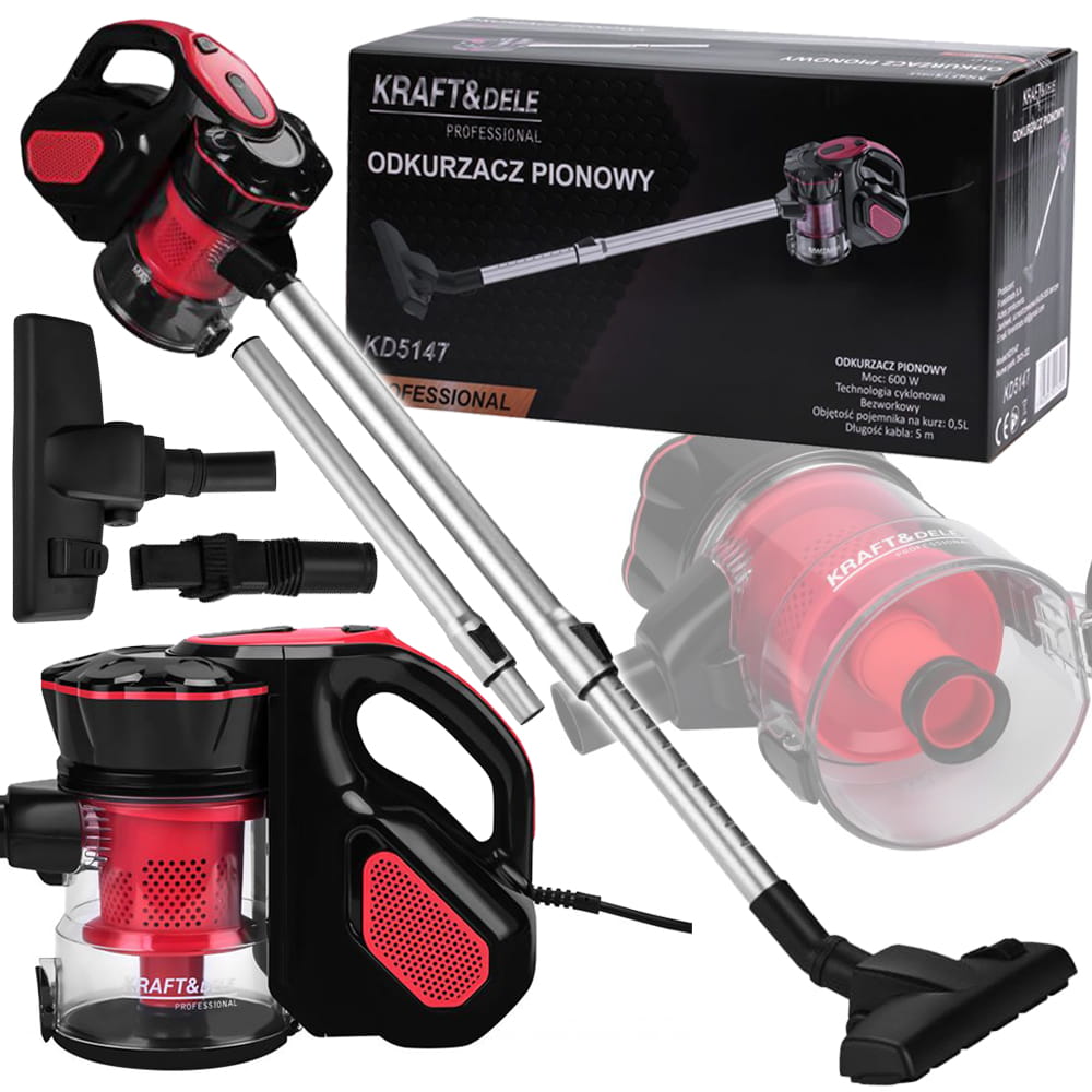 Silnik o mocy 600 W zapewnia wysoką siłę ssania, a 0,5-litrowy pojemnik na kurz umożliwia szybkie i higieniczne opróżnianie – bez konieczności stosowania worków. Długi, 5-metrowy przewód pozwala na sprzątanie dużej powierzchni bez konieczności ciągłego przepinania urządzenia do innych gniazdek.