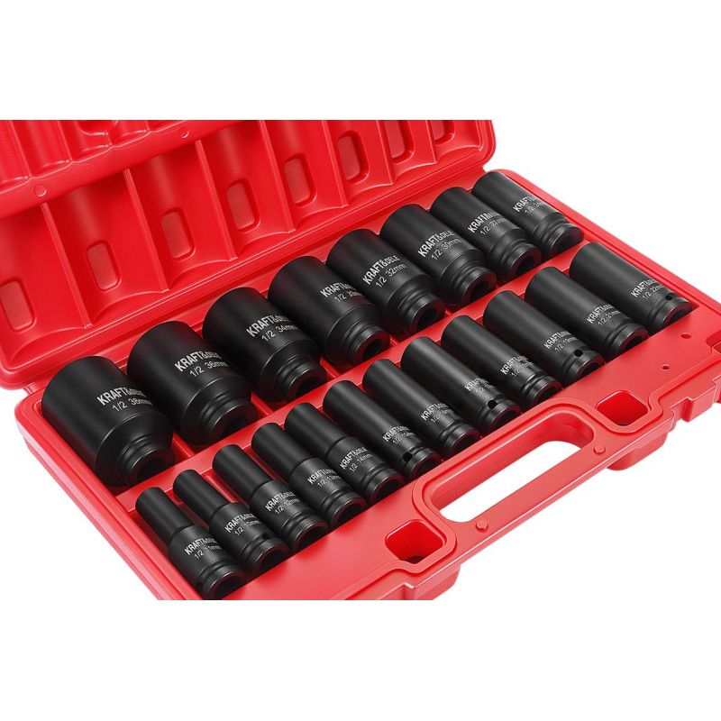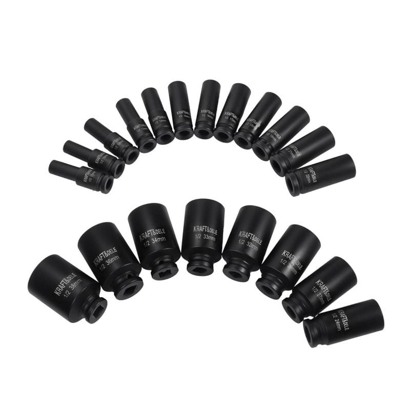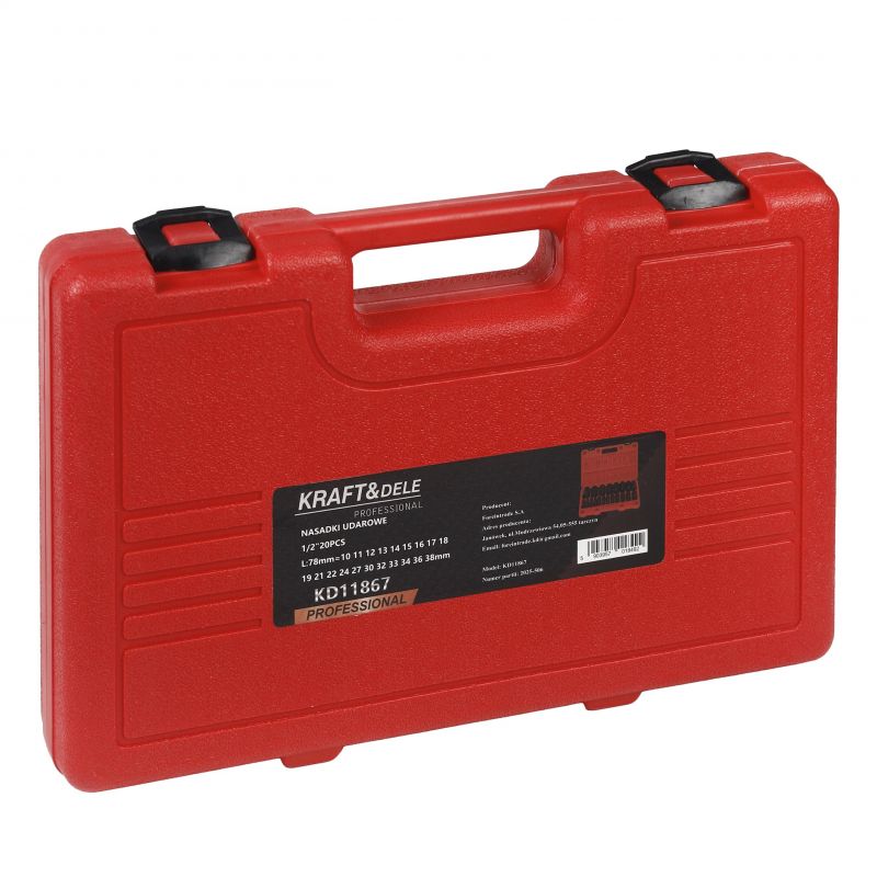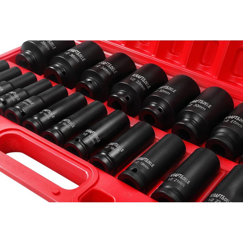 NASADKI UDAROWE DŁUGIE 1/2" CR-MO 20el 10-38mm KLUCZ UDAROWY WALIZKA