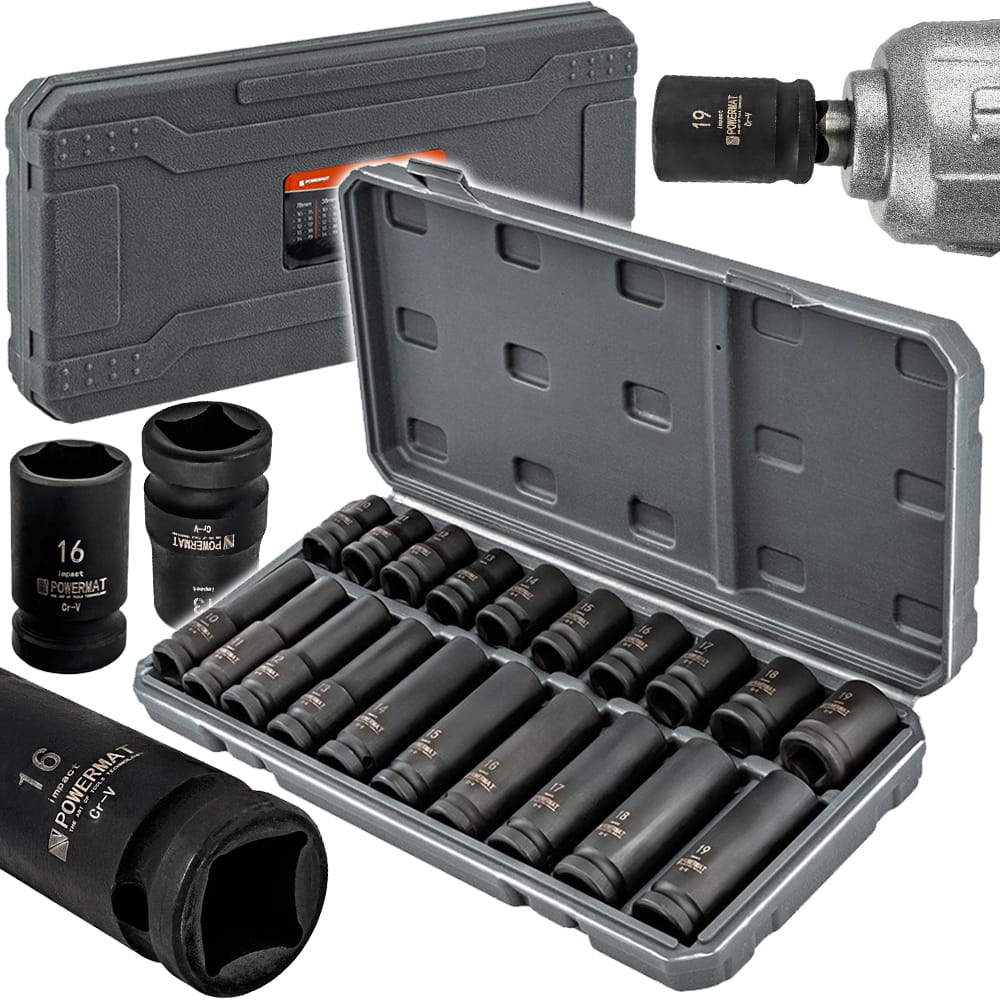 NASADKI UDAROWE HEX 1/2 CR-V 20szt 38mm 78mm DO KLUCZA UDAR WALIZKA ZESTAW