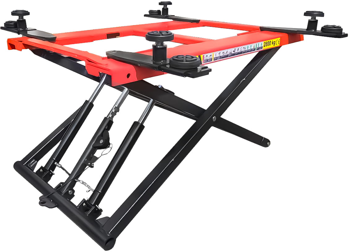 - Stabilna konstrukcja – system nożycowy zapewnia równomierne i bezpieczne unoszenie pojazdu
