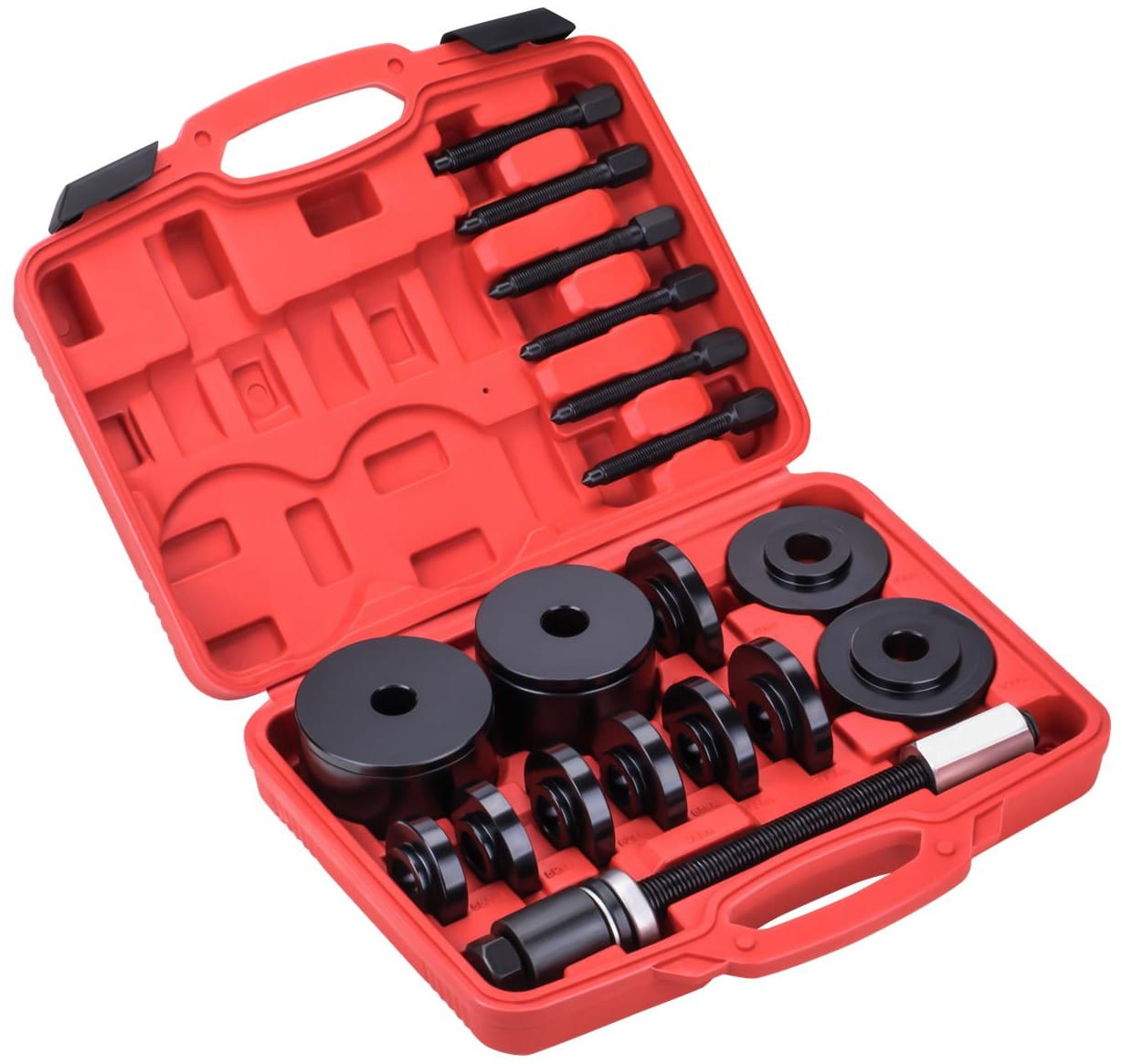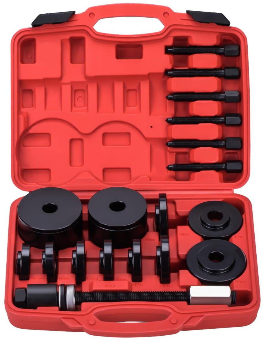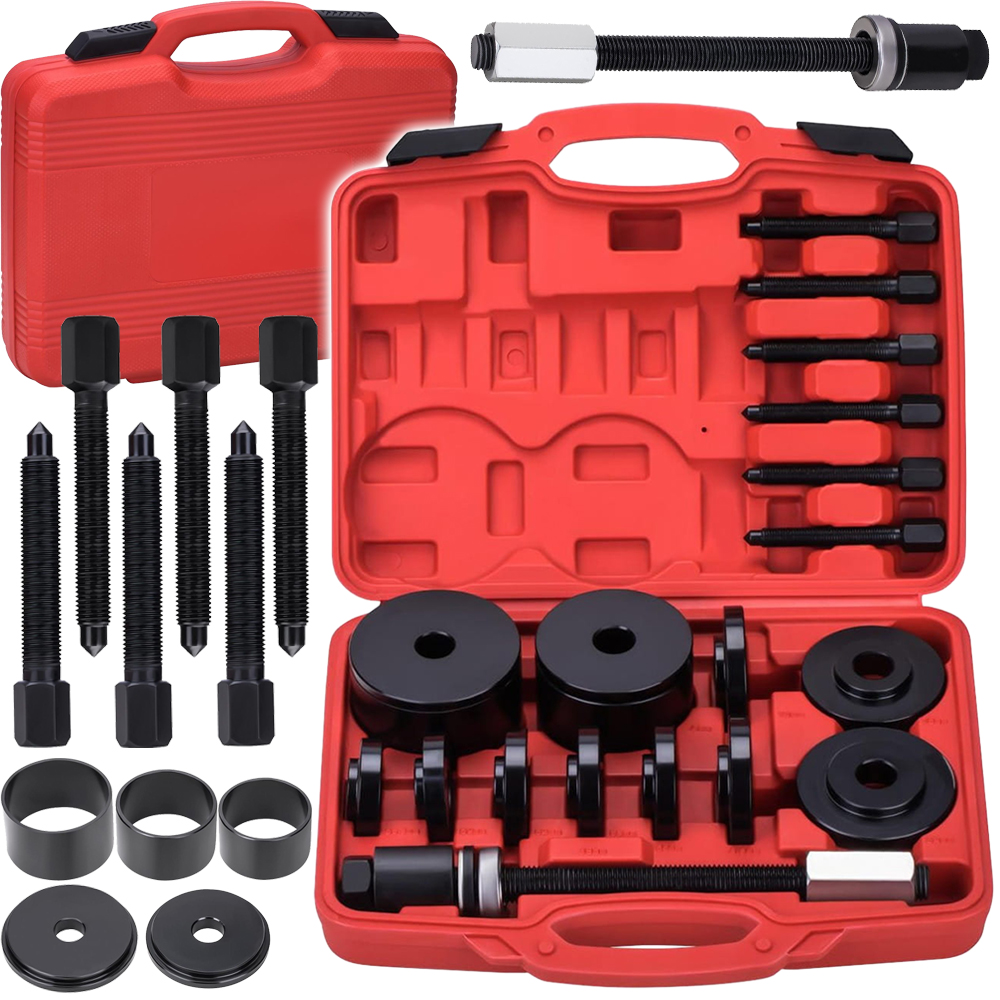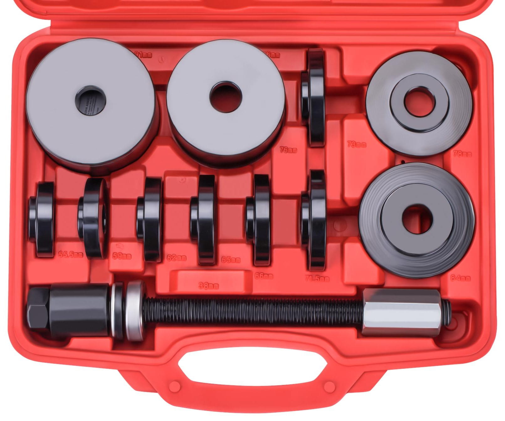 Zestaw do demontażu i montażu piast, łożysk oraz tulei to specjalistyczne narzędzie przeznaczone do prac warsztatowych i serwisowych. Umożliwia bezpieczne i precyzyjne wyciskanie oraz osadzanie elementów bez konieczności użycia siły udarowej. Dzięki zastosowaniu odpowiednich adapterów i śrub, praca przebiega sprawnie i bez ryzyka uszkodzenia części.