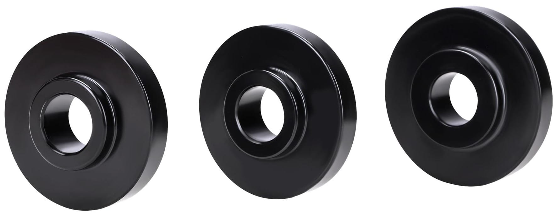 - Precyzyjne dopasowanie – zestaw dysków i tulei pozwala dobrać odpowiedni rozmiar do konkretnego zastosowania