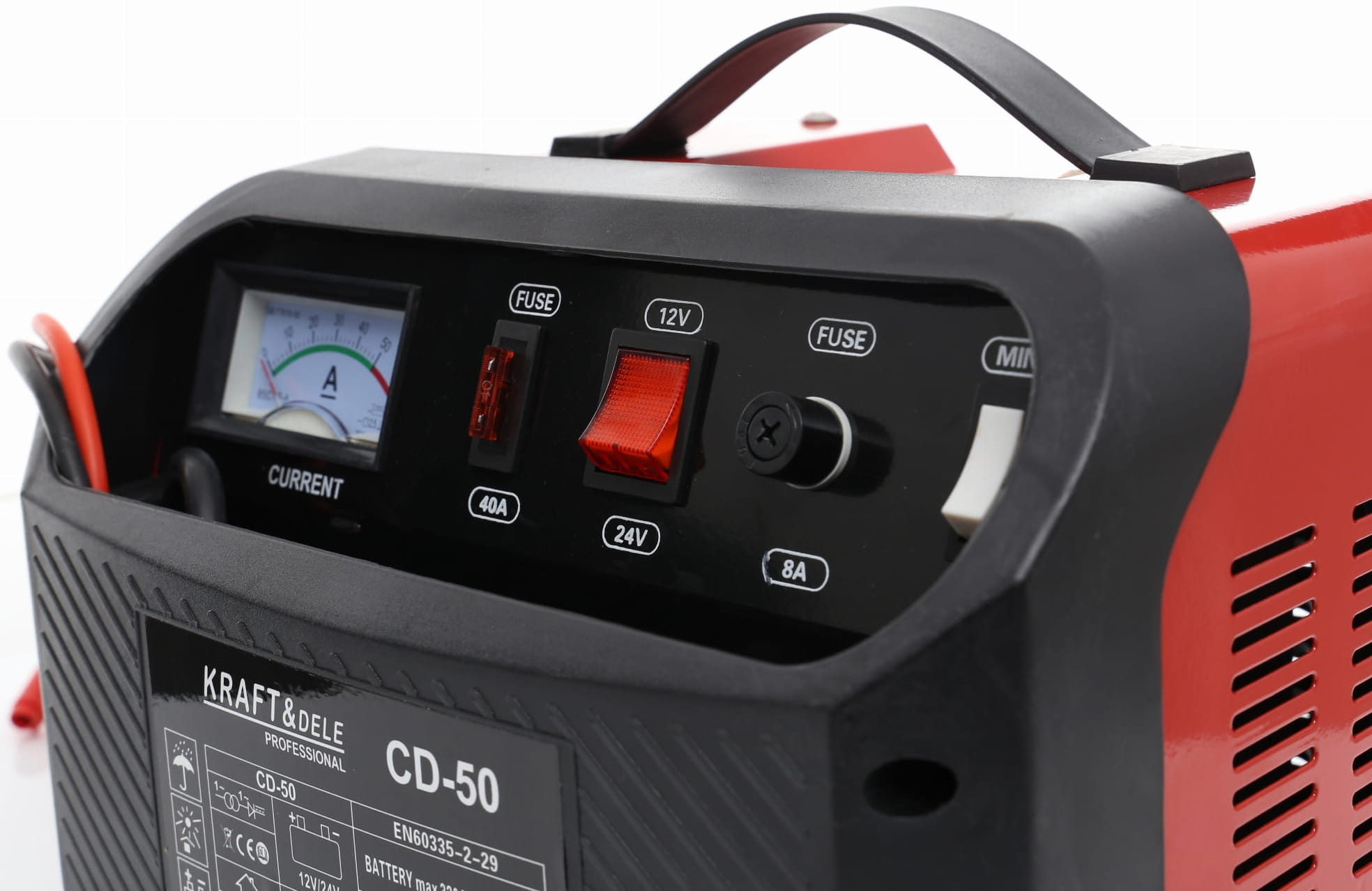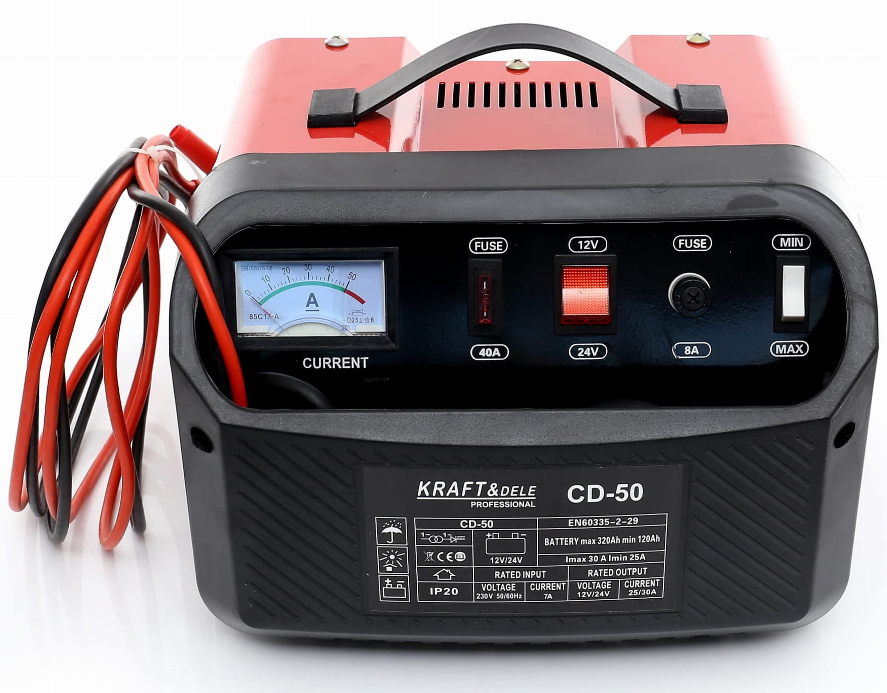 Prostownik szybkiego ładowania renomowanej firmy KRAFT&DELE to niezawodne urządzenie służące do ładowania akumulatorów wykorzystując do tego napięcie 12V/24V. Niezbędny element wyposażenia każdego profesjonalnego warsztatu jak i domowego garażu.