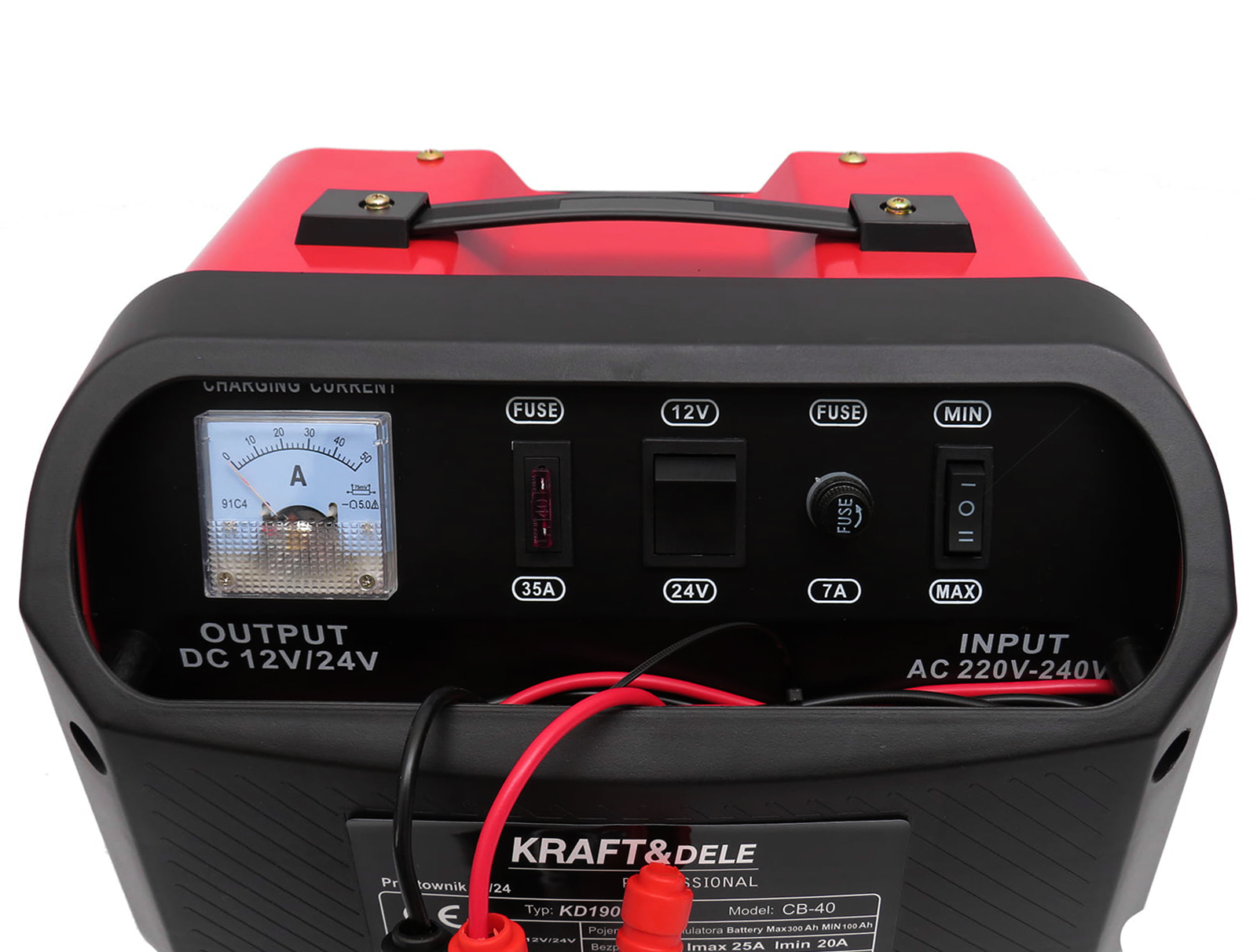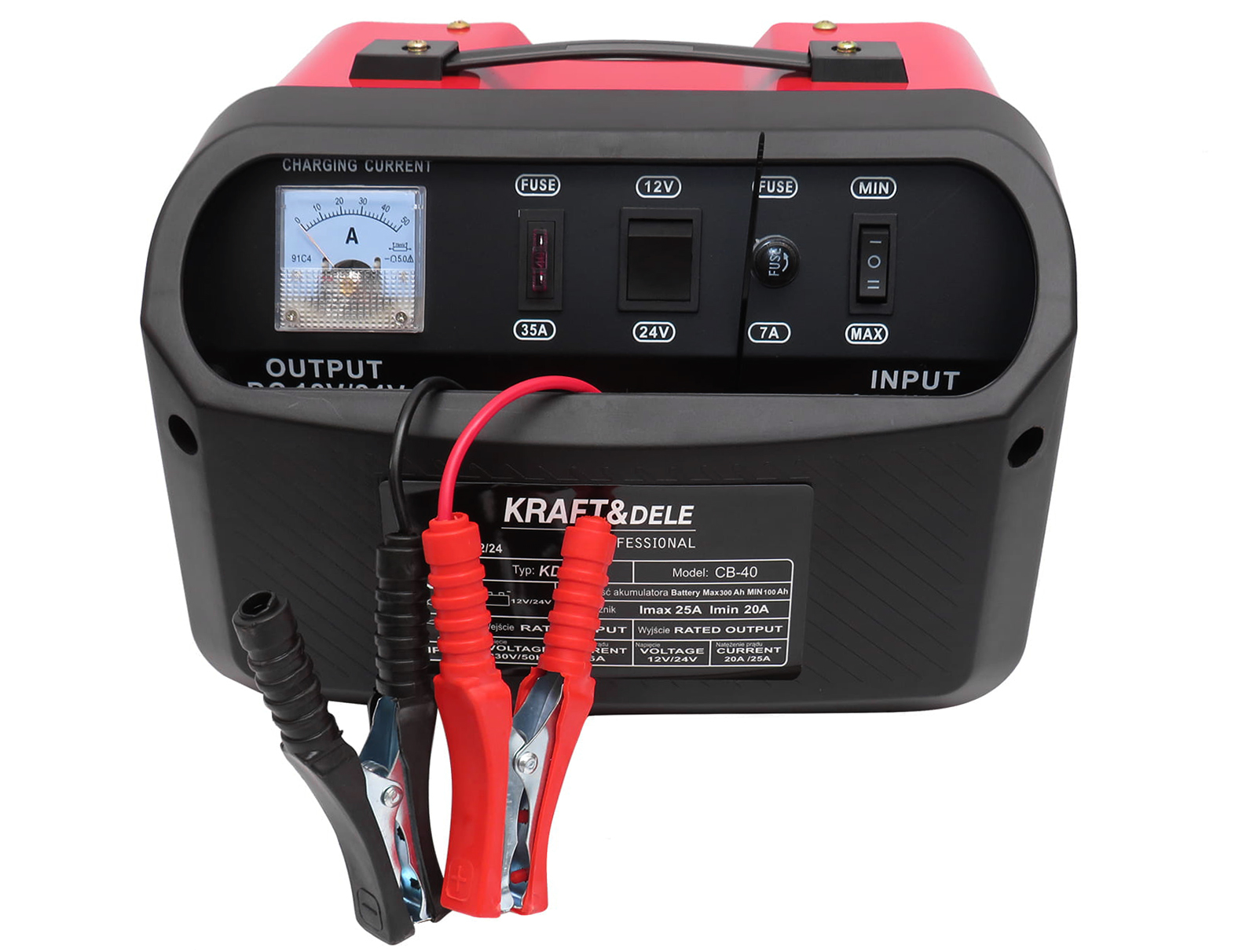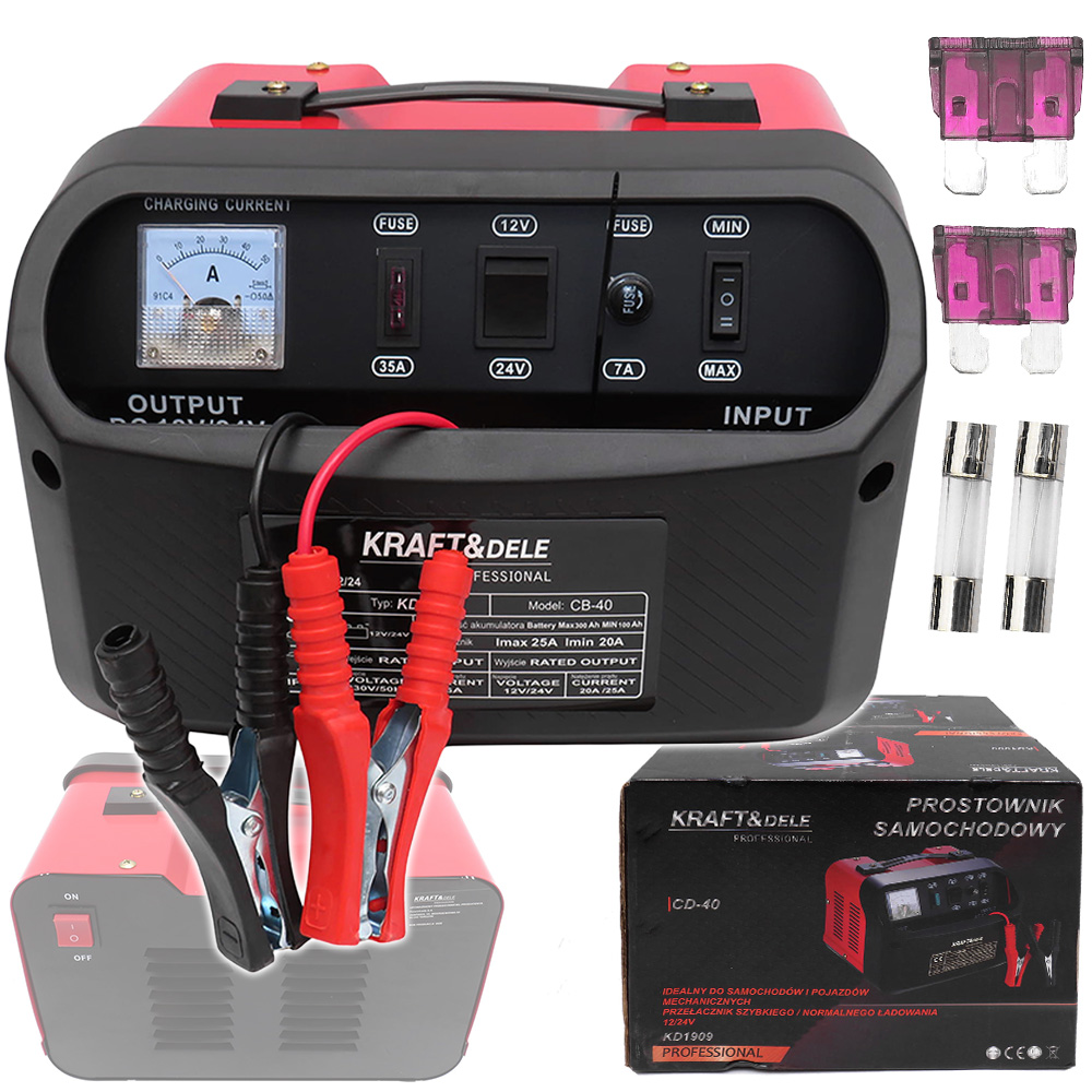 PROSTOWNIK SAMOCHODOWY DO AKUMULATORÓW 12V 24V 40A AMPEROMIERZ