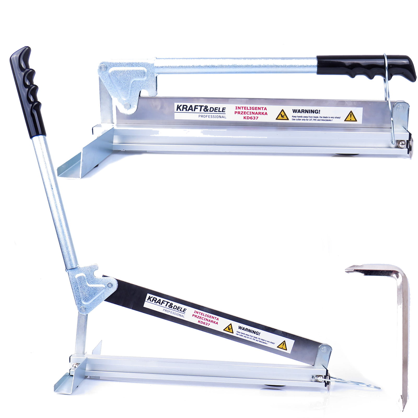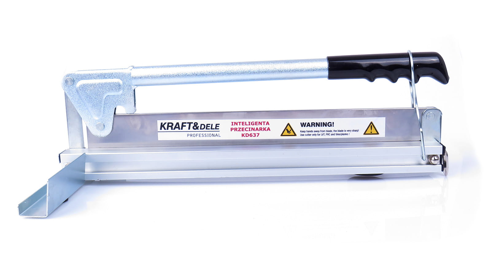 Ręczna przecinarka do paneli laminowanych polskiej marki Kraft&Dele model. Dzięki temu urządzeniu bez wysiłku skrócisz deski podłogowe na odpowiednią długość bez odprysków. Urządzenie nadaje się do obróbki płyt MDF, VCT, PCV, płytek dywanowych, gumowych, winylowych, skóry oraz winylowych i cementowo-wiórowych paneli elewacyjnych