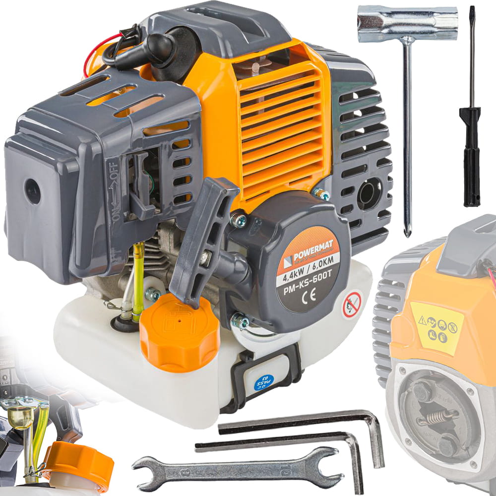 Silnik do kosy spalinowej marki POWERMAT o mocy efektywnej (EPS) 6KM jest profesjonalnym urządzeniem przeznaczonym do cięcia trawy, zarośli, krzewów oraz poszycia trawników, sadów itp. Posiada solidnie zbudowany kuty korbowód.