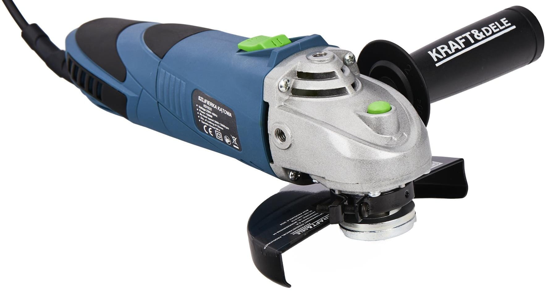 Antypoślizgowa rękojeść główna zapewnia pewny chwyt i kontrolę nad narzędziem. Dodatkowa rękojeść montowana w trzech pozycjach pozwala dostosować ustawienie do rodzaju wykonywanej pracy oraz preferencji użytkownika. Regulowana osłona tarczy skutecznie chroni przed odpryskami materiału, zwiększając bezpieczeństwo pracy.