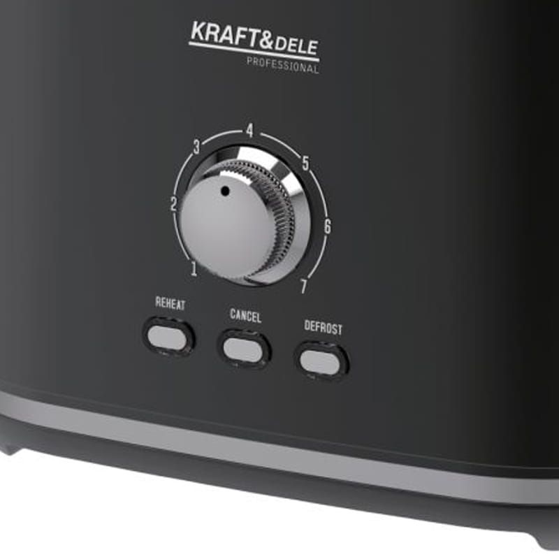Użytkownik ma możliwość wyboru jednego z 7 poziomów przyrumienienia, co pozwala dopasować efekt do indywidualnych upodobań. Dodatkowo funkcje Defrost (rozmrażanie) i Reheat (podgrzewanie) umożliwiają wygodne odświeżenie wcześniej przygotowanego pieczywa lub szybkie rozmrożenie kromek bez ryzyka przypalenia.