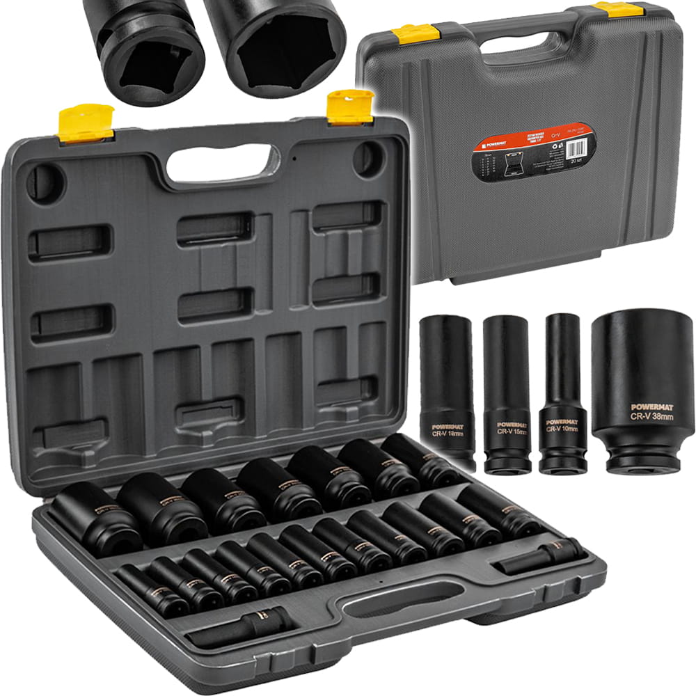 ZESTAW NASADEK UDAROWYCH DO KLUCZY 10-38mm HEX 20szt 1/2" 78mm CRV WALIZKA