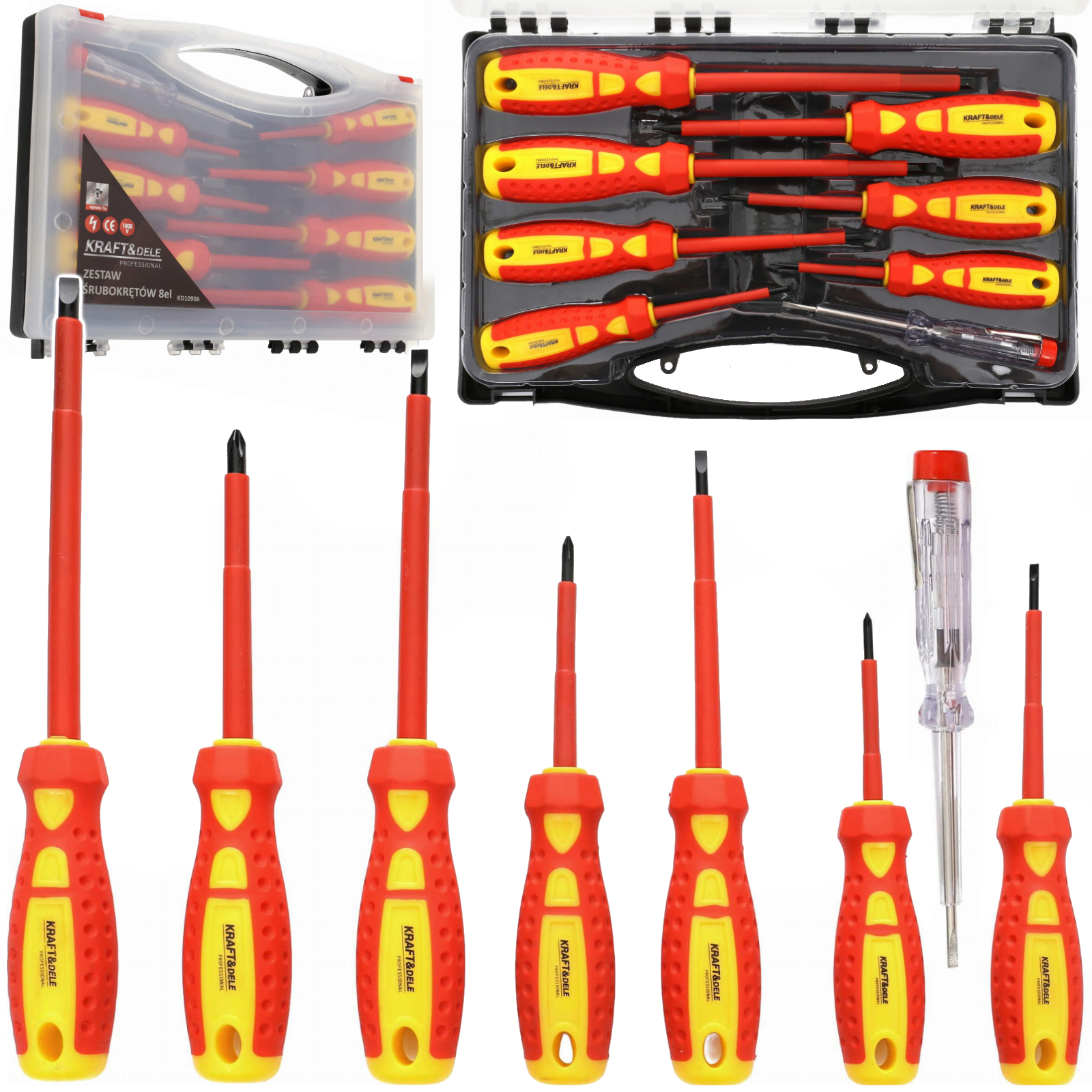 Kompletny zestaw – zawiera wkrętaki płaskie, krzyżowe oraz próbnik napięcia.